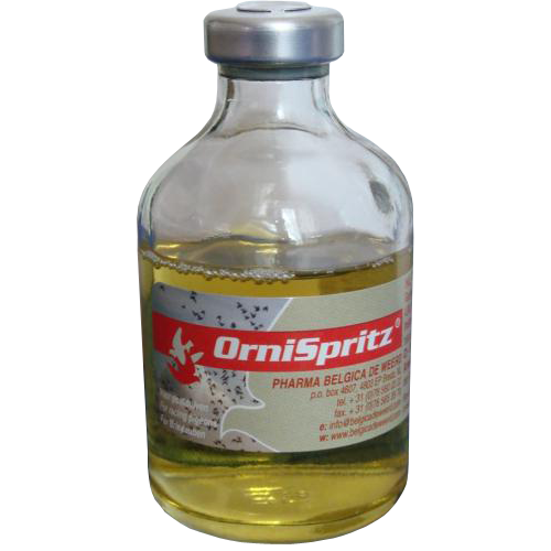 Ornispritz is an injectable solution specifically formulated for the treatment of respiratory illnesses in pigeons, particularly ornithosis (a disease caused by Chlamydia psittaci) and coryza (caused by bacterial infections). This innovative product is known for providing 100% effective performance, revolutionizing competition preparation and bird health management for pigeon fanciers.